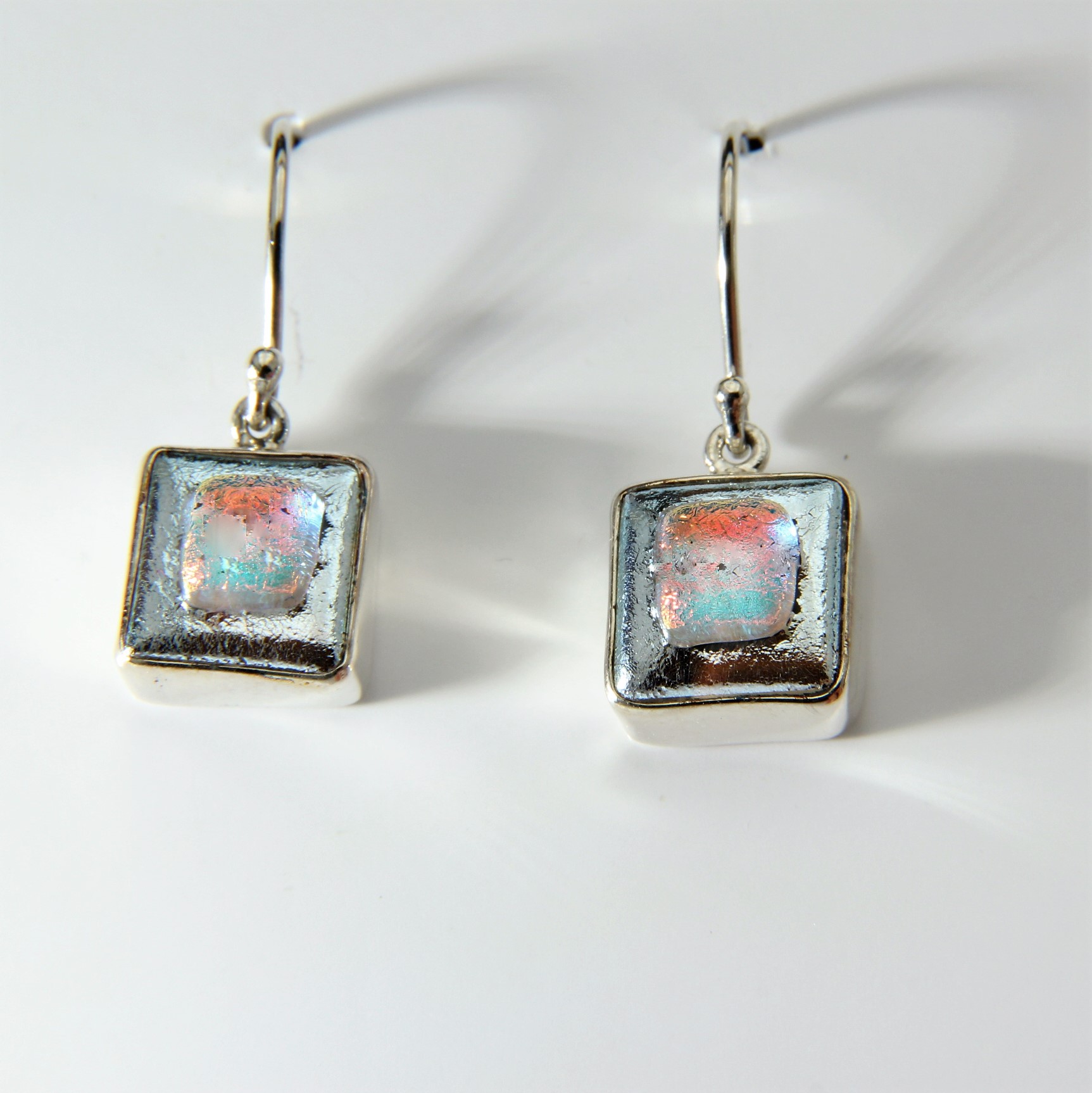 Produkte aus dem Kunstglaser Handwerk. Dichroic-Glas wird mit farbig leuchtenden Metallen bedampft und in mehreren Schichten miteinander verschmolzen. Fusing. Es entstehen einzigartige Reflektionen, die bei unterschiedlichem Lichteinfall Farbwechsel erkennen lassen.