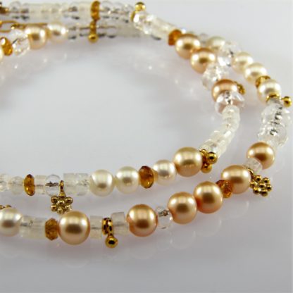 Collier mit Mondstein, Bergkristall, Citrin und SW-Perlen. 43-47cm lang.
