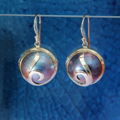 Ohrhänger mit Mabeperle Ø 16mm, blau gefärbt. 32mm lang